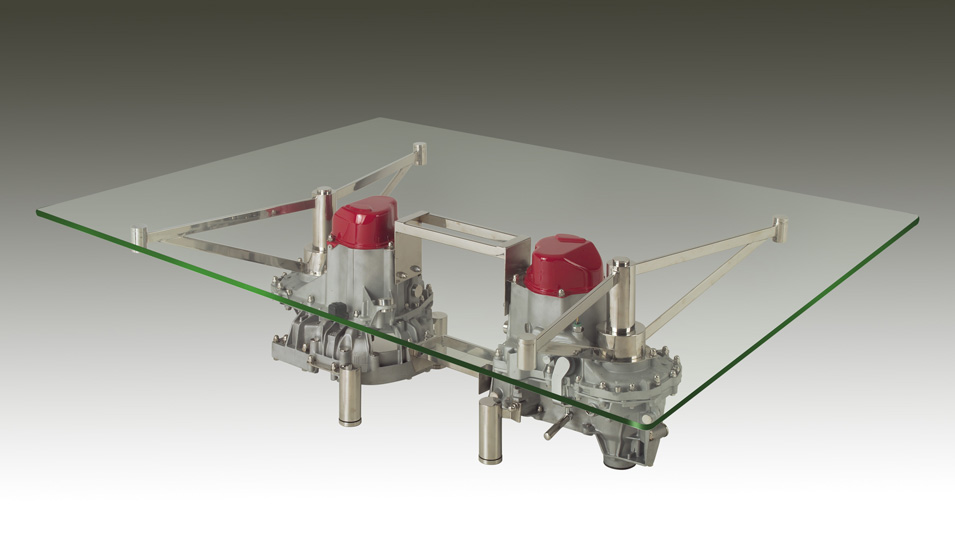 Mesa cajas de cambios Renault de 180x110x45 ctms. de altura, con cristal templado de 12 m/m de espesor.