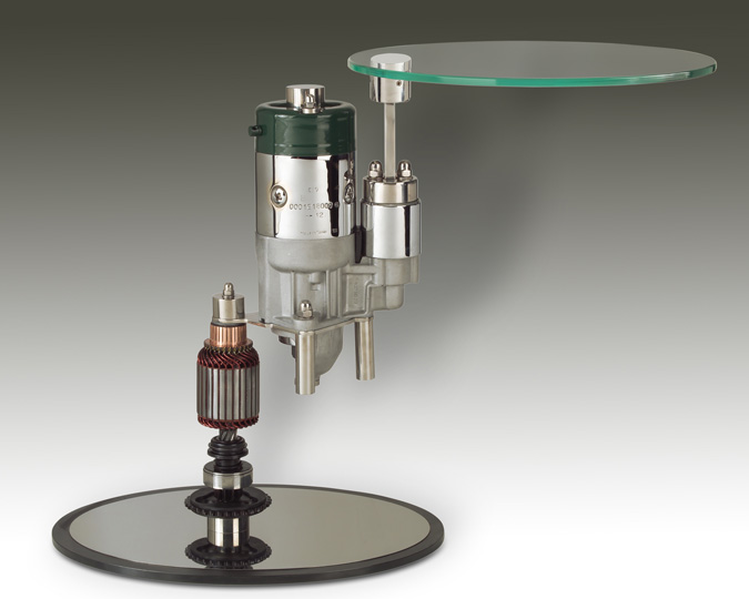Escultura motor arranque, base 37x27x45 ctms. de altura.